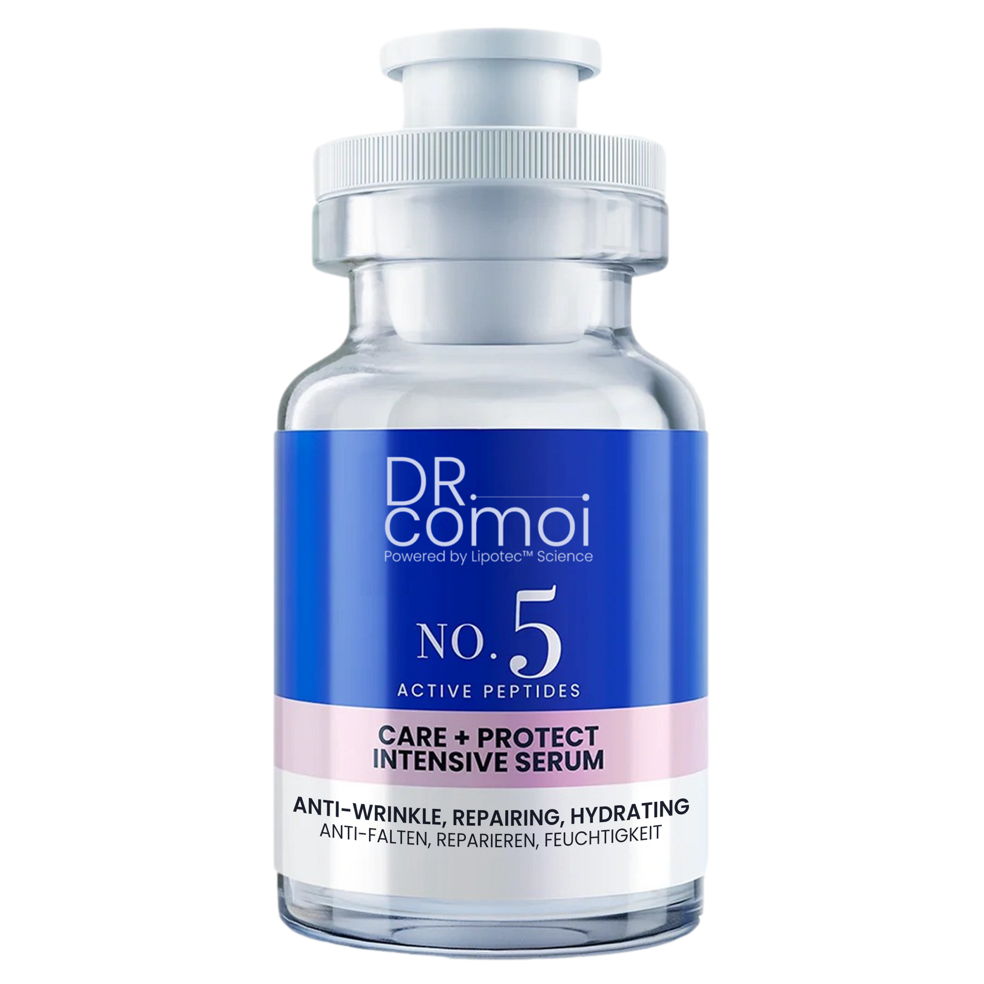 Das laborreine, duftstoff- und parfümfreie Ampullenkonzentrat mit nativem Glycerin, Betain, Hyaluron, biofermentierten Ingredienzien, marinen Extrakten und dem pflanzlichen Konservierungsstoff Lävulinsäure initialisiert nährende Reparaturprozesse, mindert Rötungen und errichtet einen breitspektralen Barriereschutz gegen aggressive Reinigungssubstanzen, globale Umweltfaktoren und extreme Witterungseinflüsse. Bioaktive Moisturizer begrenzen zudem den transdermalen Wasserverlust. Als Zellaktivator mit Multiplikatoreffekt intensiviert das N°5 Care + Protect Intensive Serum gezielt die Wirkstoffaufnahme und die Entfaltung der nachfolgenden Pflegeprodukte. Das Komplementär-Cosmeceutical ergänzt Ihre gewohnte Wirkstoffkosmetik als Impulsgeber – optimal in Kombination mit dem Basis-Serum N°9 All-In-One Amplified Serum.